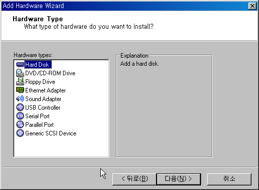Hard Disk 를 선택하고 다음 버튼을 클릭합니다.